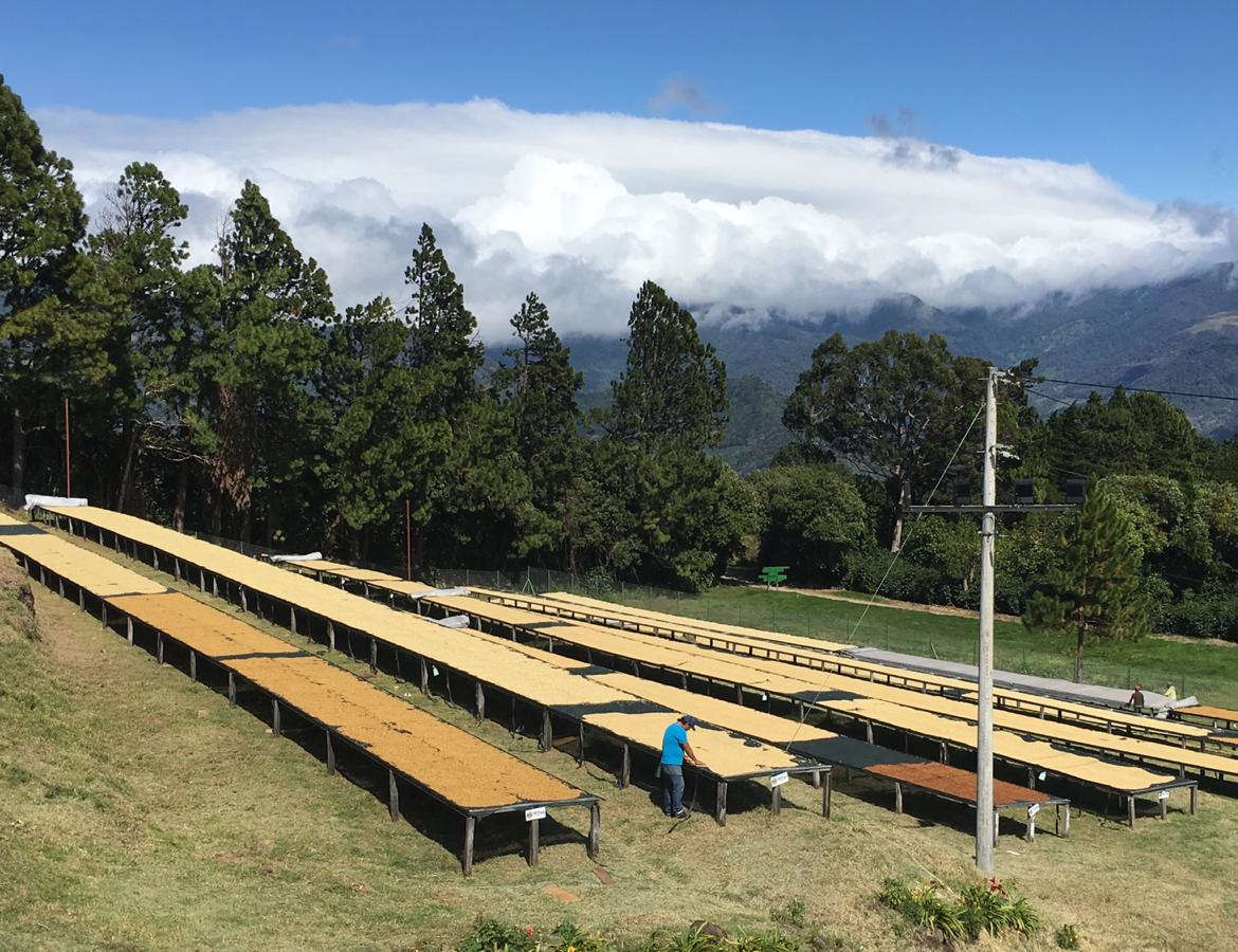 At Don Pepe Estate, a skilled team and robust on-site infrastructure guarantee meticulous attention to detail throughout the harvest. Cherries are carefully picked at peak maturity and floated to separate less dense and damaged seeds. The cherries are then depulped, fermented, washed, and dried on raised beds, with regular turning over an 8 to 12-day period.
